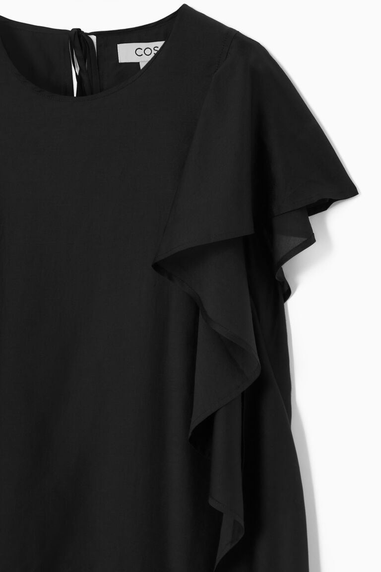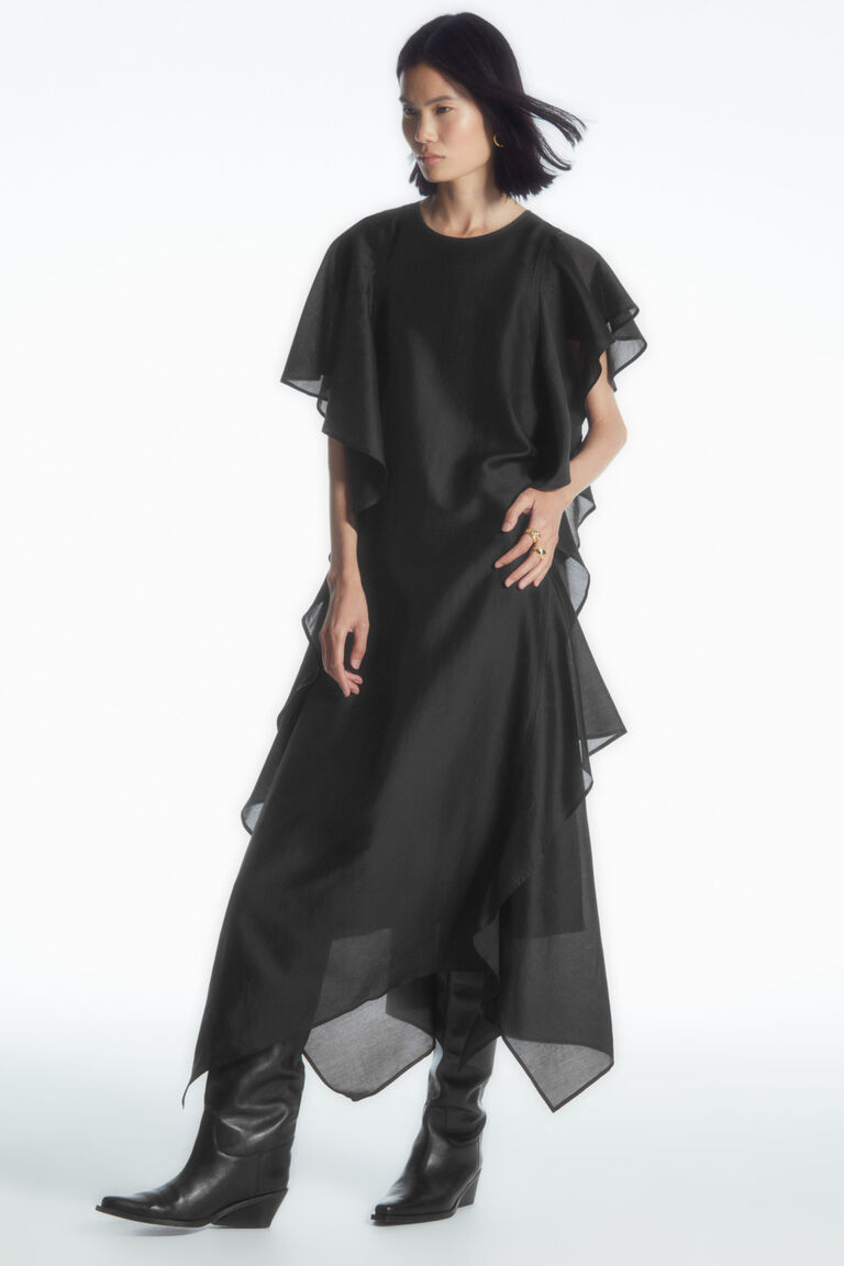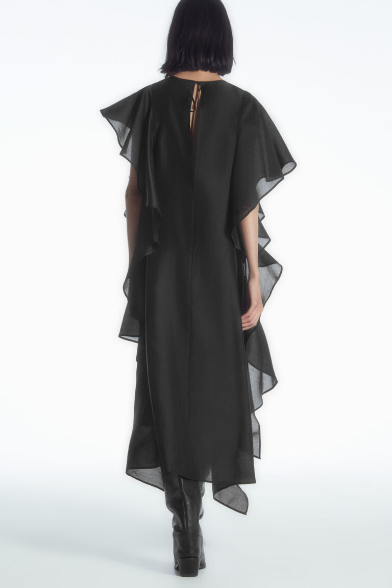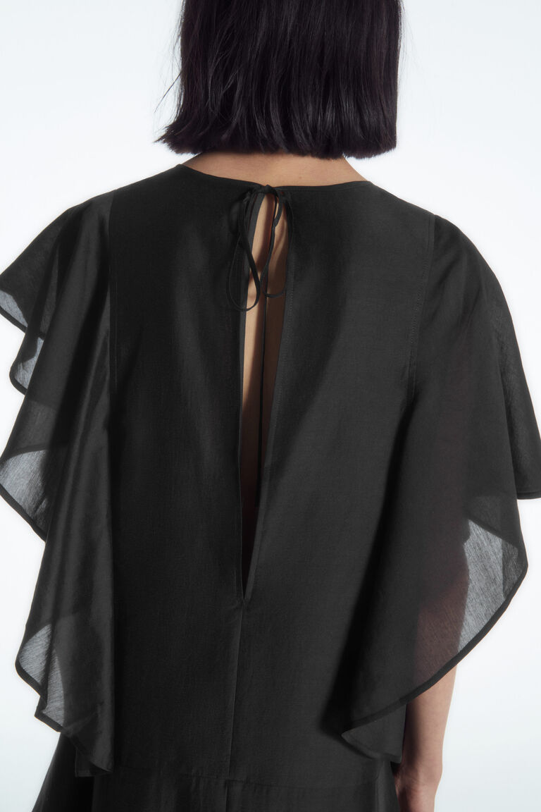 เดรสยาวมิดี้ตัวนี้ ผลิตจากผ้า TENCEL™ Lyocell เนื้อพลิ้วไหวบางเบา ออกแบบด้วยระบายที่ชายกระโปรงเพื่อเพิ่มความสง่างามสำหรับโอกาสพิเศษ ด้านหลังมีผ่ารูปหยดน้ำที่ยึดด้วยสายผูกเรียวบาง.