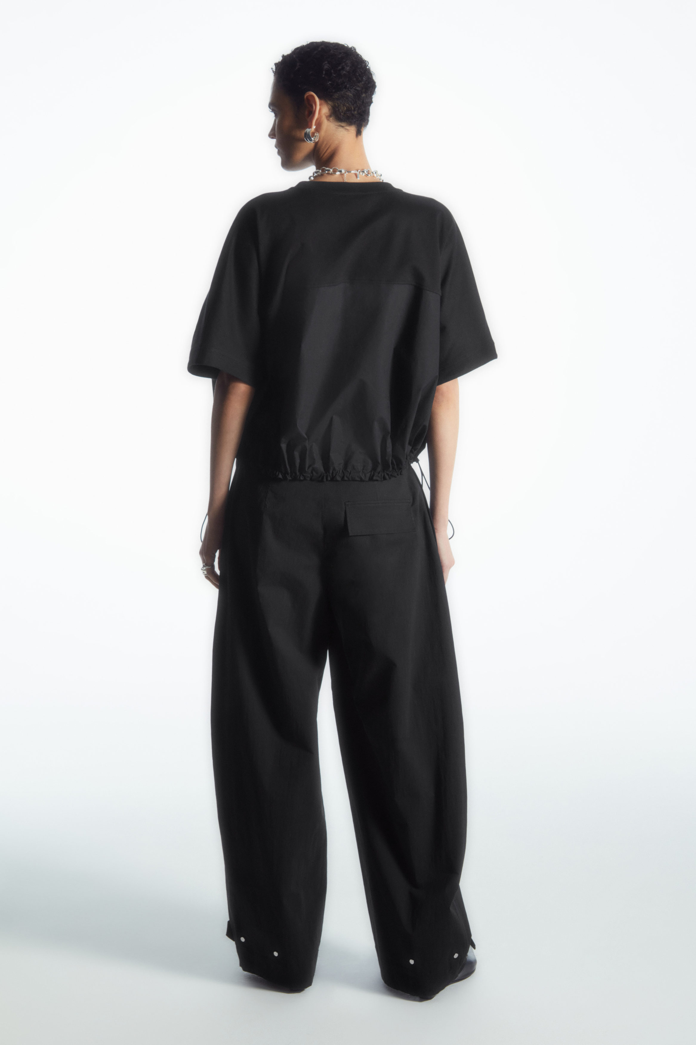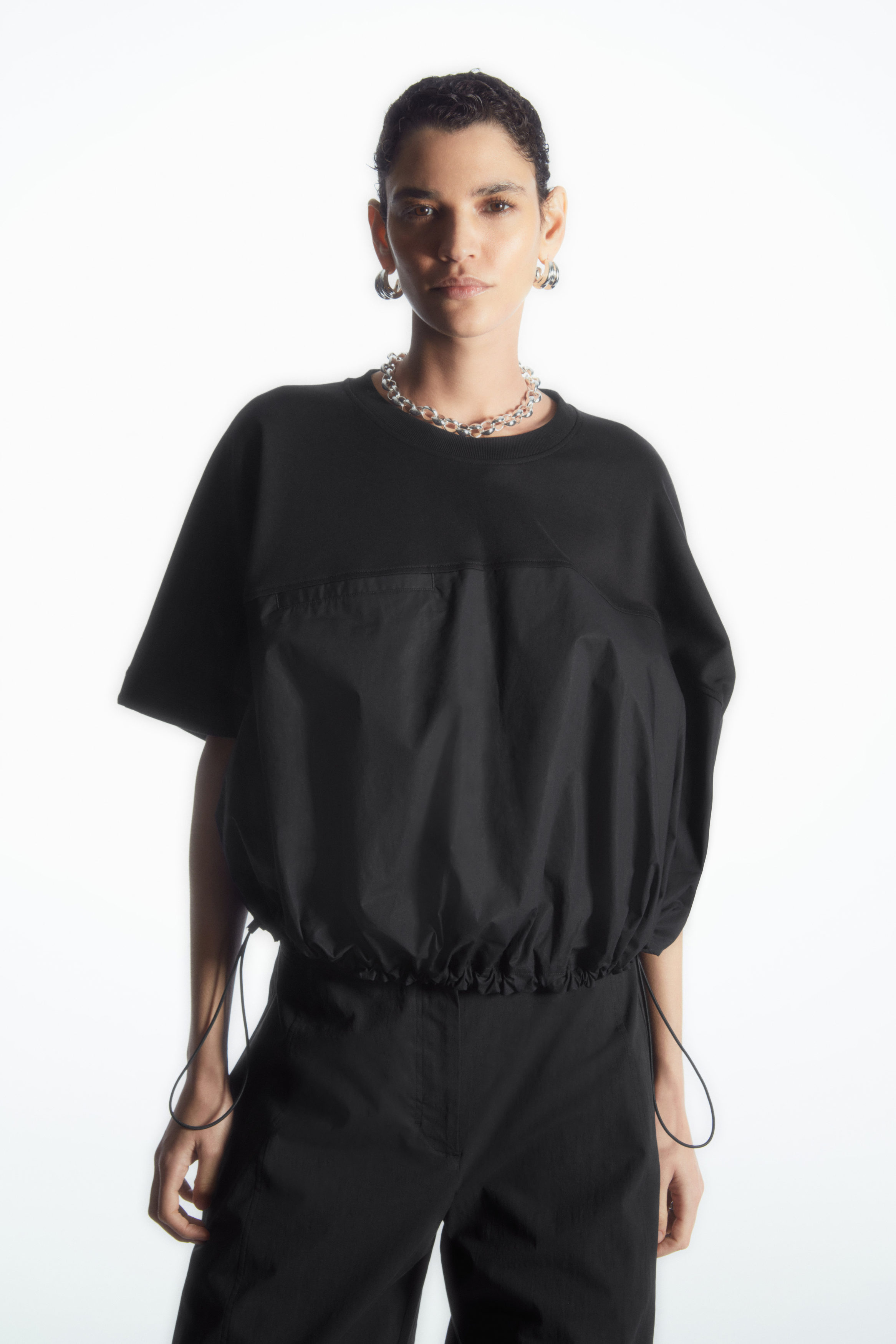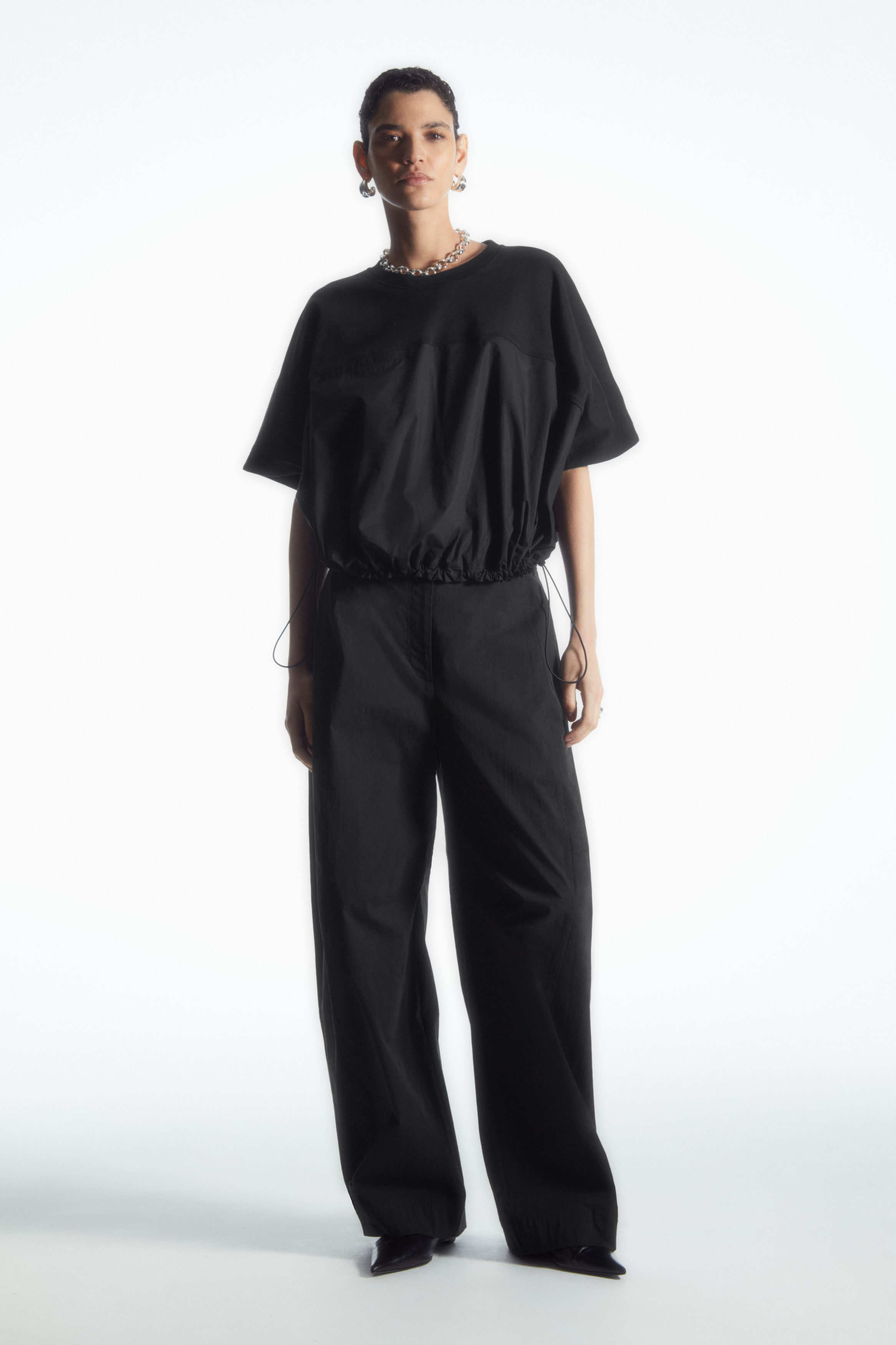เสื้อตัวนี้ ได้แรงบันดาลใจจากเสื้อ Track คลาสสิก นำเสนอดีไซน์แบบต่อผ้า พร้อมเชือกรูดที่ชายเสื้อเพื่อเน้นทรงโอเวอร์ไซส์ นำเสนอในสีเขียวโอลีฟ และผลิตจากผ้าคอตตอน โดยเสื้อท่อนบนเป็นผ้าเจอร์ซีย์ และชายเสื้อเป็นผ้าปอปลิน.