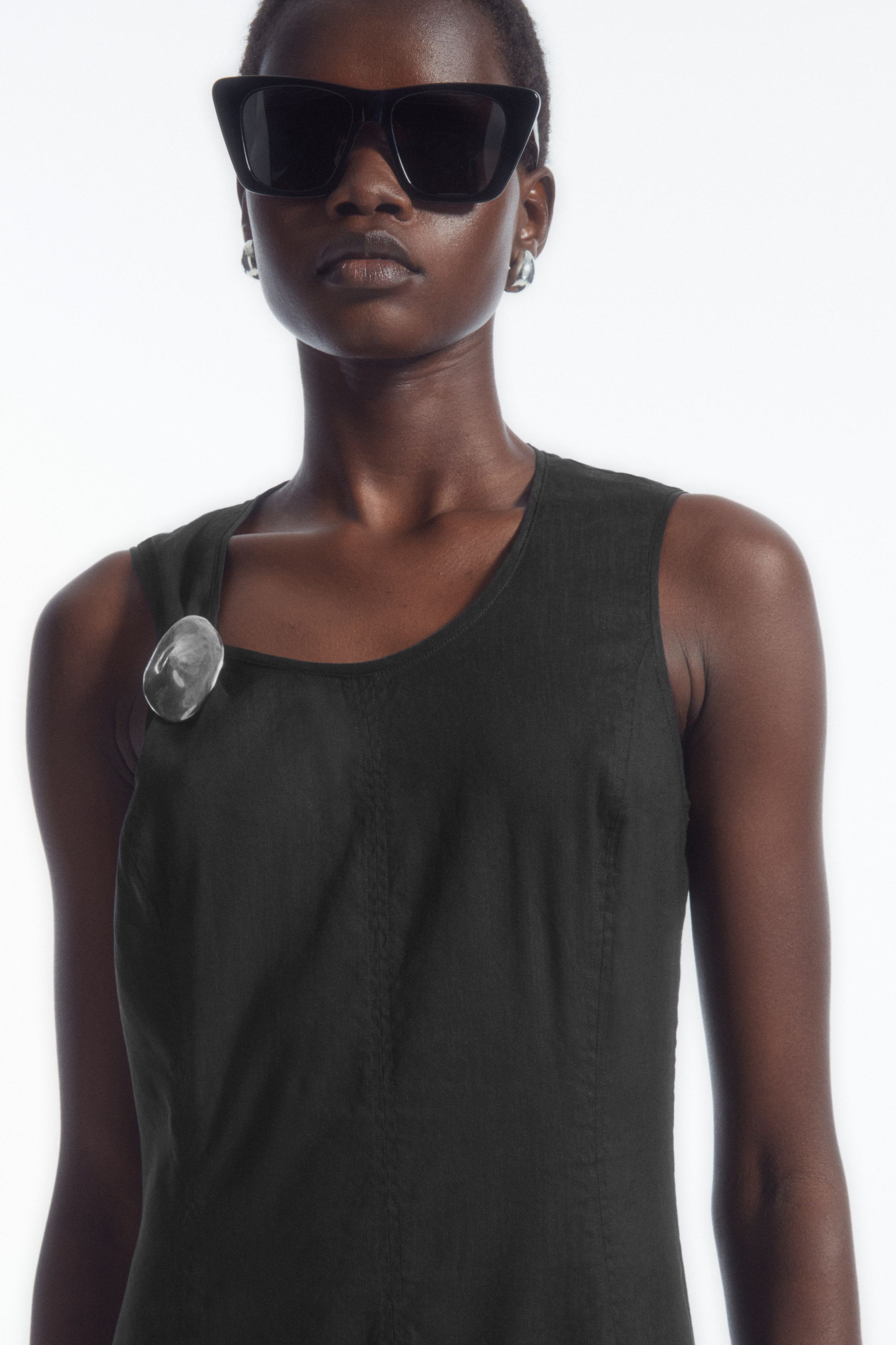 เสื้อท่อนบน: ผ้าลินิน 55%, ผ้าฝ้าย 45% กระโปรง: ผ้า Ramie 100% ซับใน: TENCEL™ Lyocell 83%, โพลีเอสเตอร์รีไซเคิล 17% ไม่รวมส่วนตกแต่ง / ซักเครื่องได้