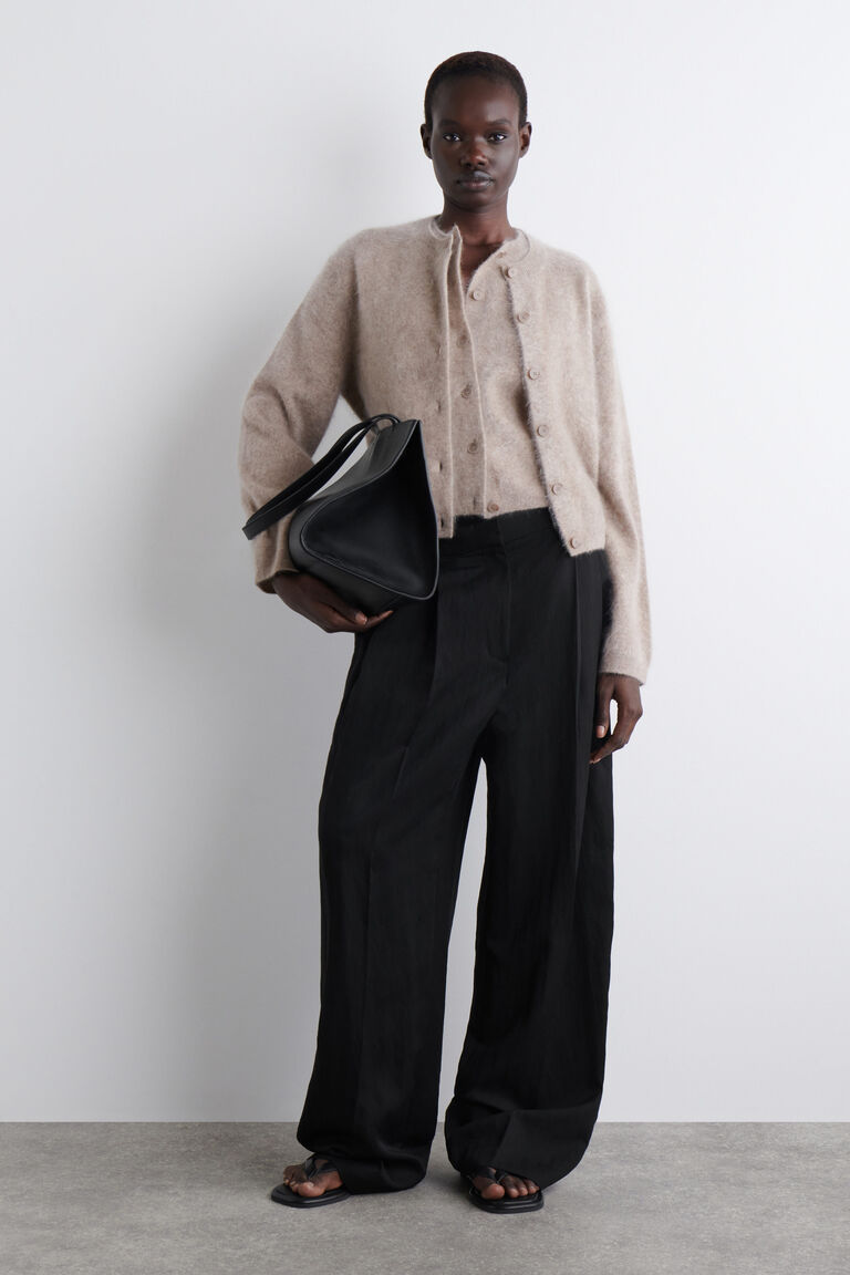 คาร์ดิแกนคอกลมคลาสสิกได้รับการอัปเดตด้วยผิวสัมผัสใหม่สำหรับคอลเลกชัน Pre-Fall 2025 ผลิตจากแคชเมียร์ที่ได้รับการรับรอง GCS ซึ่งผ่านการแปรงเพื่อให้สัมผัสนุ่มนวลและมีความรู้สึกที่น่าสัมผัส พร้อมด้วยเฉดสีเอสเปรสโซเข้มที่เข้ากันได้อย่างลงตัวกับชิ้นอื่น ๆ ในตู้เสื้อผ้าของคุณ สวมใส่เดี่ยว ๆ หรือสวมทับด้วย เสื้อกั๊กเข้าชุด ได้ตามต้องการ