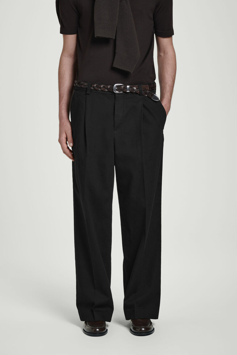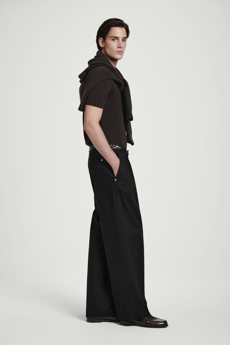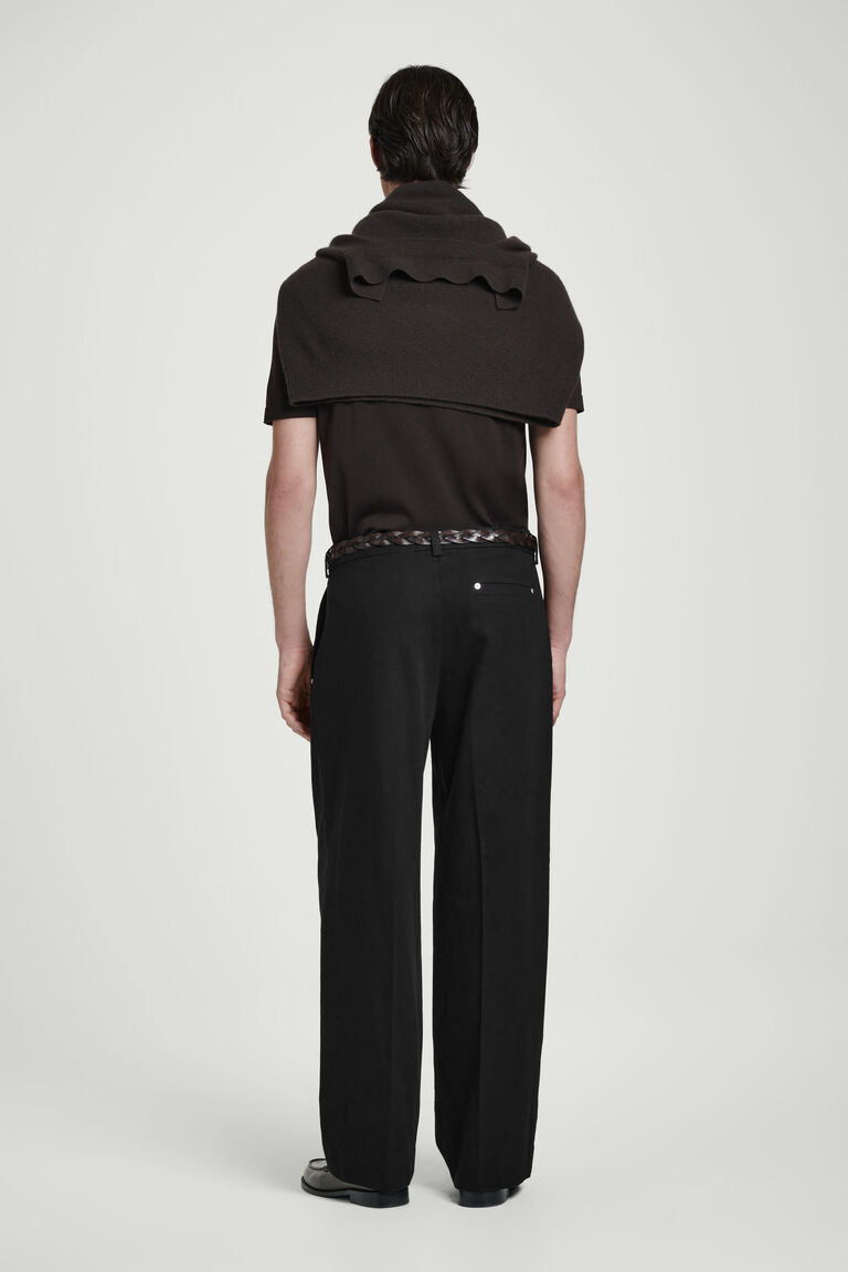 กางเกงขายาวตัวนี้ ผสานรวมความเป็นทางการของการตัดเย็บเข้ากับความสบายของผ้ายีนส์ได้อย่างลงตัว ผลิตจากผ้าออร์แกนิกคอตตอนและลินินผสม ตัดเย็บในทรง Relaxed ขากว้างยาวเต็มตัวที่ยาวคลุมรองเท้า ติดกระดุมก้านสไตล์ Utility ที่ขอบเอว พร้อมกระเป๋าสอดเฉียงด้านหน้า.