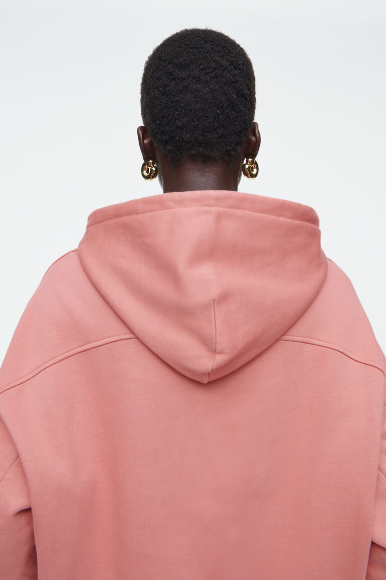 เสื้อฮู้ดสีชมพู Dusty ตัวนี้เป็นเสื้อผ้าเลานจ์แวร์ที่ดูดีมีสไตล์ เหมาะสำหรับวันพักผ่อน ผลิตจากผ้าเจอร์ซีย์ผ้าฝ้ายด้านในเป็นผ้าฟลีซเนื้อนุ่ม ออกแบบมาพร้อมฮู้ดมีเชือกรูด ชายเสื้อโค้งมน และขลิบริมแบบจั๊ม