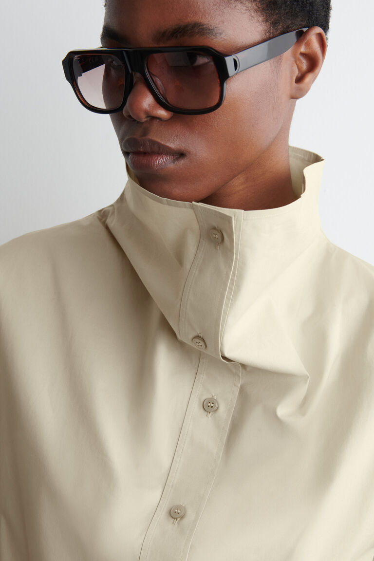 NO RETURN & EXCHANGE - เสื้อเชิ้ตแขนยาว คอสูง ทรงหลวม