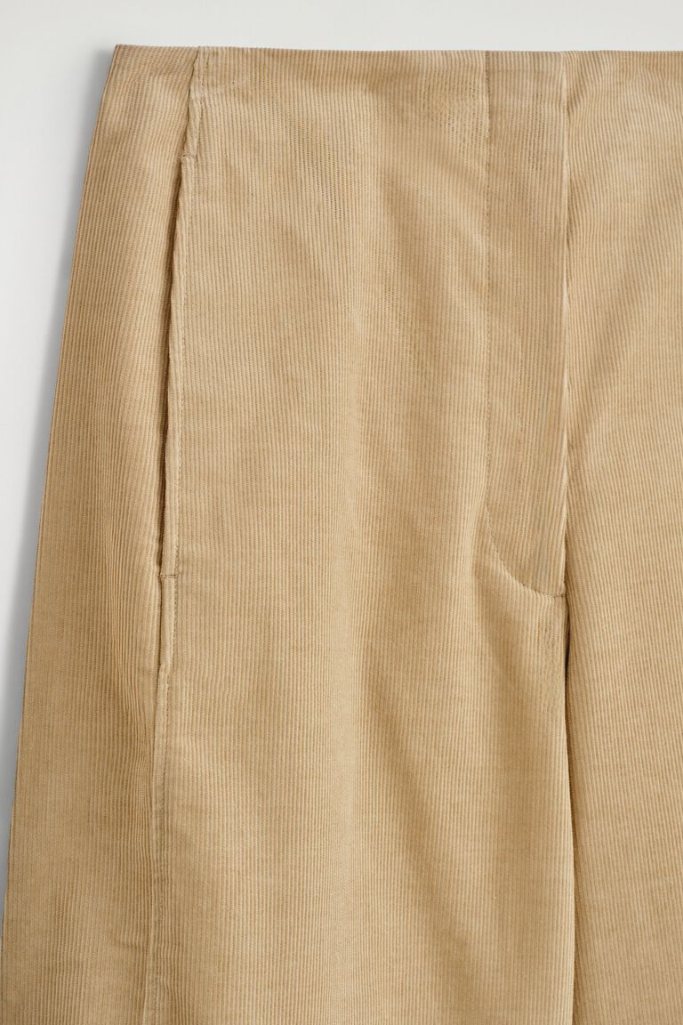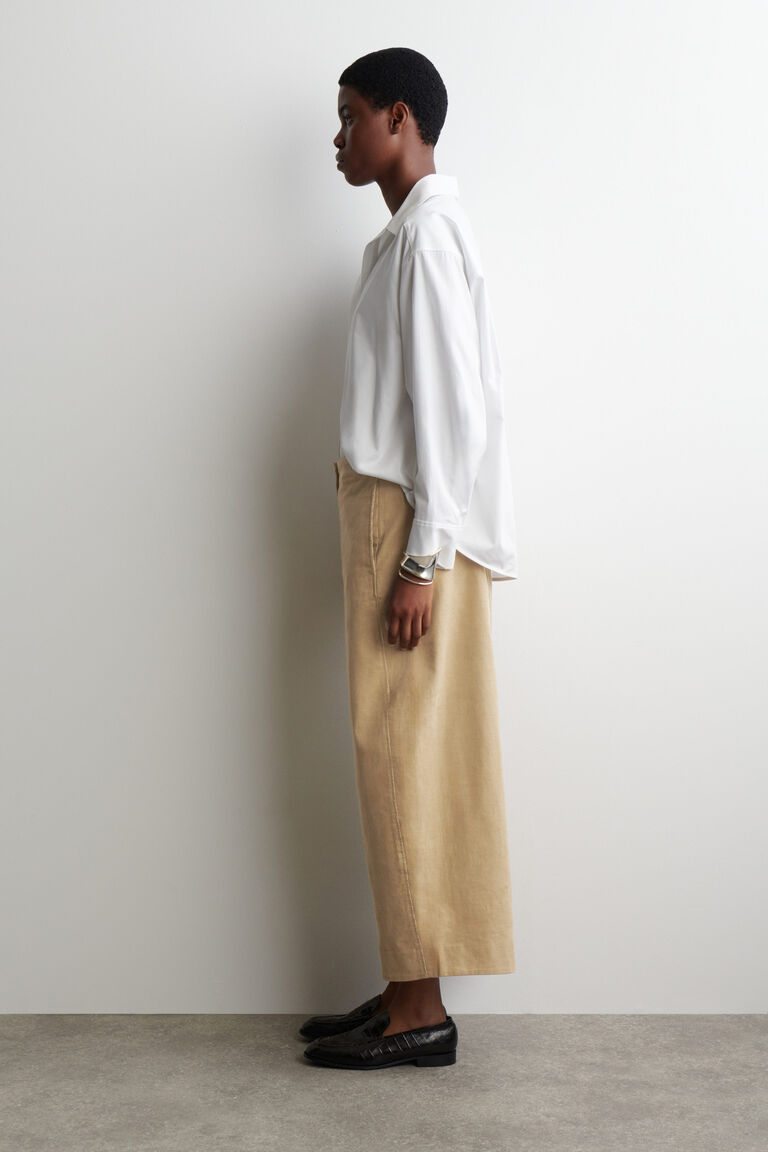 กางเกงขายาวผ้าลูกฟูกเนื้อสัมผัสดีทรงทันสมัยตัวนี้ตัดเย็บในทรงขากระบอกโค้งที่ดูโดดเด่น และมาในสีน้ำตาลช็อกโกแลตเอิร์ธโทนที่สามารถนำไปจับคู่กับสีกลางอื่นๆ ได้อย่างง่ายดาย โดดเด่นด้วยการเย็บตะเข็บด้านบนโทนสีเดียวกัน กระเป๋าสอดที่ตะเข็บข้าง และขอบเอวเรียบง่าย