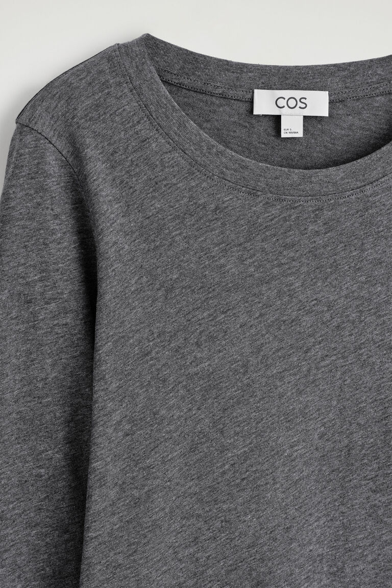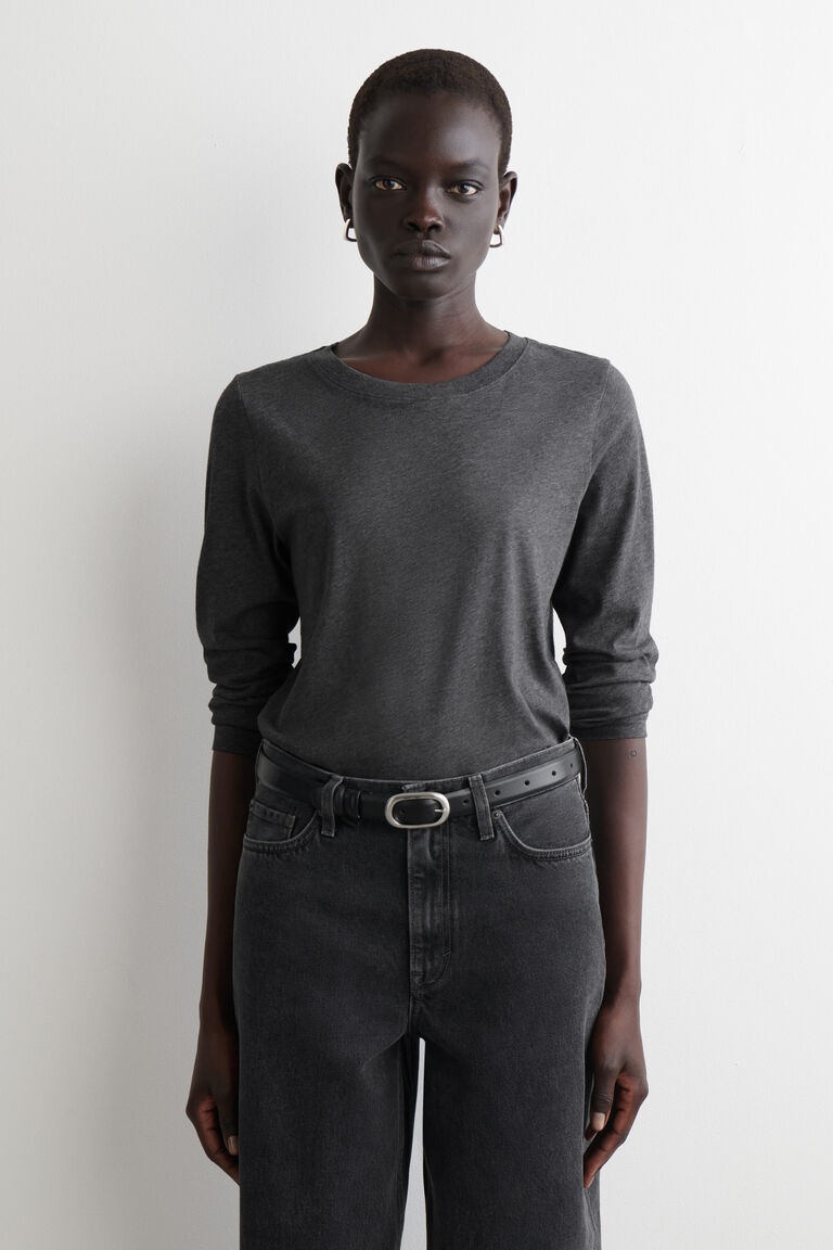 เสื้อยืดคุณภาพดีเป็นหัวใจสำคัญของคอลเลกชั่น COS มาตั้งแต่วันแรก เสื้อยืด 24/7 ตัวนี้เป็นไอเท็มเรียบง่ายที่ผลิตจากผ้าเจอร์ซีย์ผ้าฝ้ายออร์แกนิกเนื้อนุ่ม และมาในสีน้ำเงินสดใส ตัดเย็บในทรงพอดีตัว โดดเด่นด้วยคอกลมแบบจั๊มแน่น แขนยาว และเย็บตะเข็บด้านบนอย่างเรียบร้อยที่ขอบ