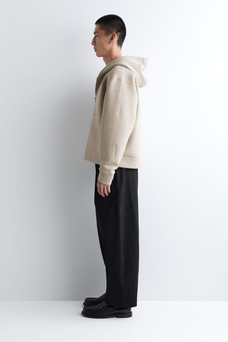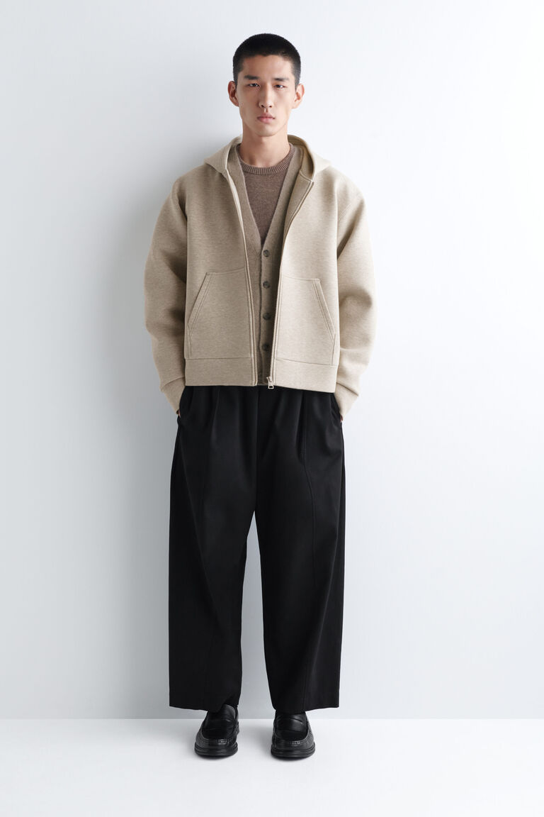 สำหรับฤดูกาลนี้ ทีมออกแบบเสื้อผ้าบุรุษของ COS ได้ยกระดับเสื้อฮู้ดแบบมีซิป ซึ่งเป็นไอเท็มคลาสสิกของเสื้อผ้ากีฬา ตัดเย็บในทรงโอเวอร์ไซส์ รุ่นนี้ผลิตจากผ้าสกูบ้าผสมผ้าฝ้ายเนื้อนุ่ม ออกแบบมาพร้อมไหล่ตกและกระเป๋าปะสองข้าง เป็นไอเท็มที่สมบูรณ์แบบสำหรับวันหยุดสุดสัปดาห์สบายๆ