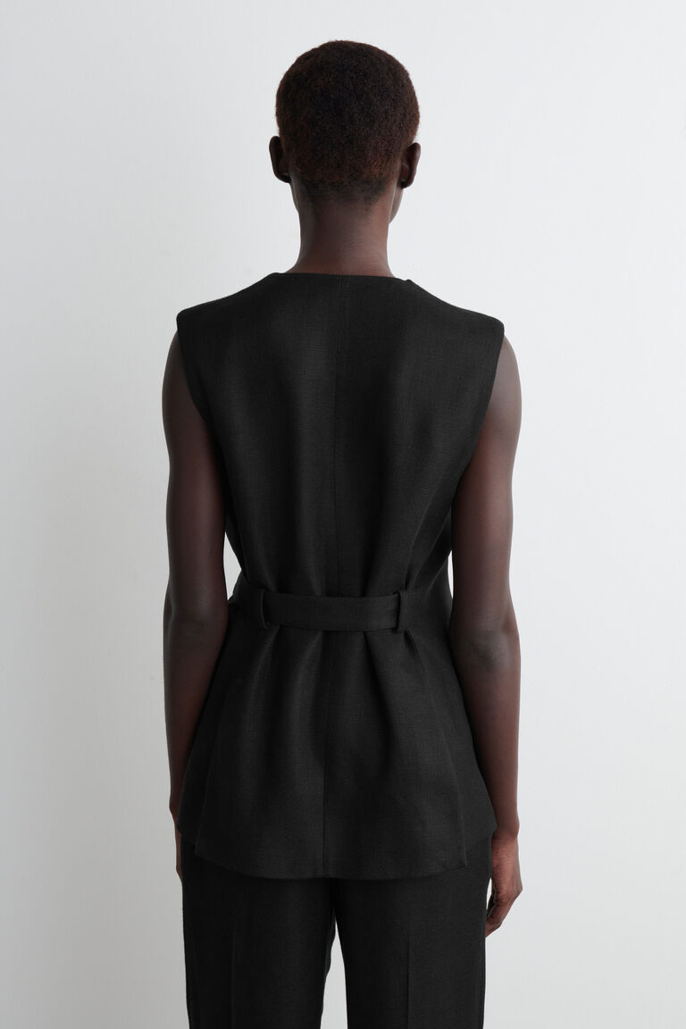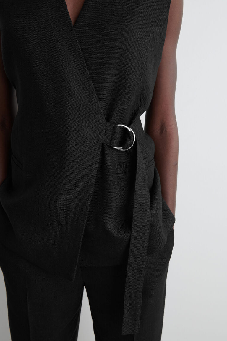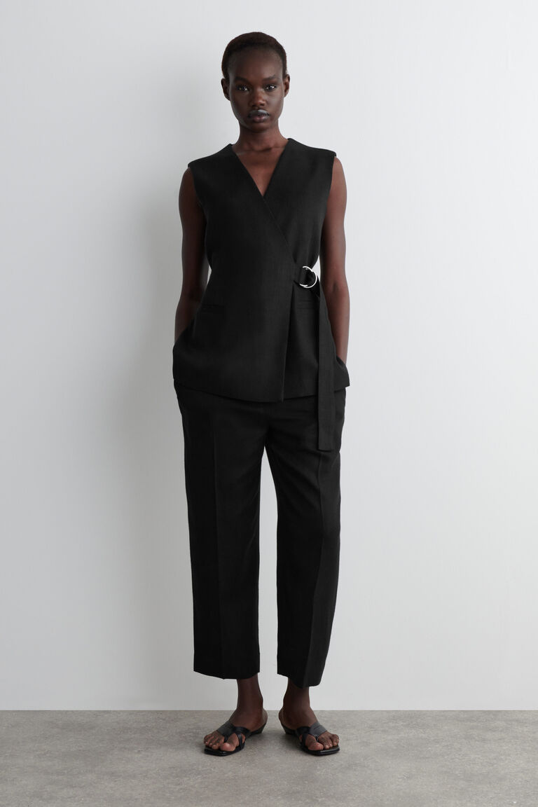 ผ่านผ้าบางเบาและรูปทรงที่ดูง่าย ทีมเสื้อผ้าผู้หญิงได้ปรับแนวคิดการตัดเย็บให้เข้ากับฤดูร้อน เสื้อกั๊กสมัยใหม่นี้ออกแบบในทรง wrap-front ที่ถูกยึดด้วยเข็มขัด D-ring และมีกระเป๋า welt ที่เป็นการยกย่องเสื้อสูทคลาสสิก จับคู่เป็นชุดกับ กางเกงตรง ได้อย่างลงตัว