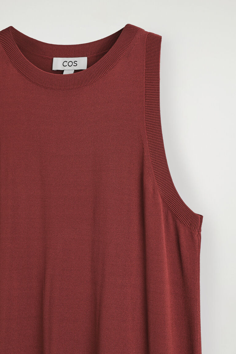 คอลเลคชันเดรสของ COS เน้นชิ้นงานที่หลากหลายและมีรูปทรงโดดเด่น ชิ้นงานถักนี้มาในโทนดำคลาสสิก ออกแบบด้วยคอปีกระดิ่งแบบริบ และกระโปรงแม็กซี่ยาวไหล่ สไตล์ง่ายๆ คู่กับรองเท sandals แบบมินิมัลเพื่อความดูดีที่ตั้งใจไว้