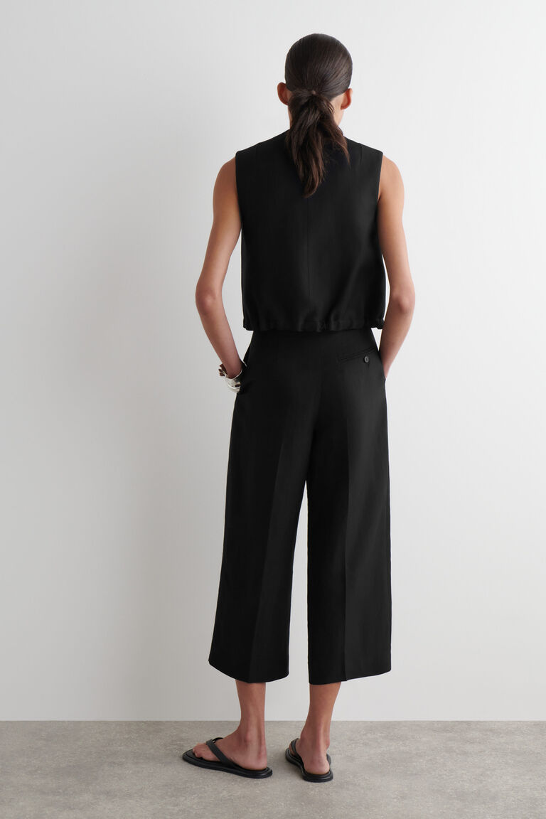กางเกงขายาวที่สวมใส่สบายนี้ผลิตจากผ้าลินินผสมที่น้ำหนักเบา ซึ่งถูกเลือกมาเพื่อความระบายอากาศตามธรรมชาติและเนื้อผ้าที่มีมิติ เหมาะกับการตัดเย็บแบบมีรอยพับกดที่ได้แรงบันดาลใจจากงานตัดเสื้อ และทรงตรงที่ตัดสั้นระดับข้อเท้า เหมาะสำหรับสไตล์ฤดูร้อน—ลองนึกถึงการจับคู่กับเสื้อสายเดี่ยว แว่นกันแดด และรองเท้าแตะ