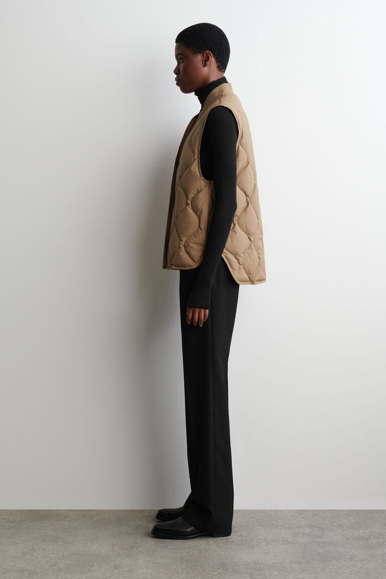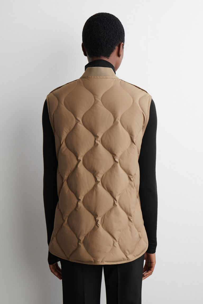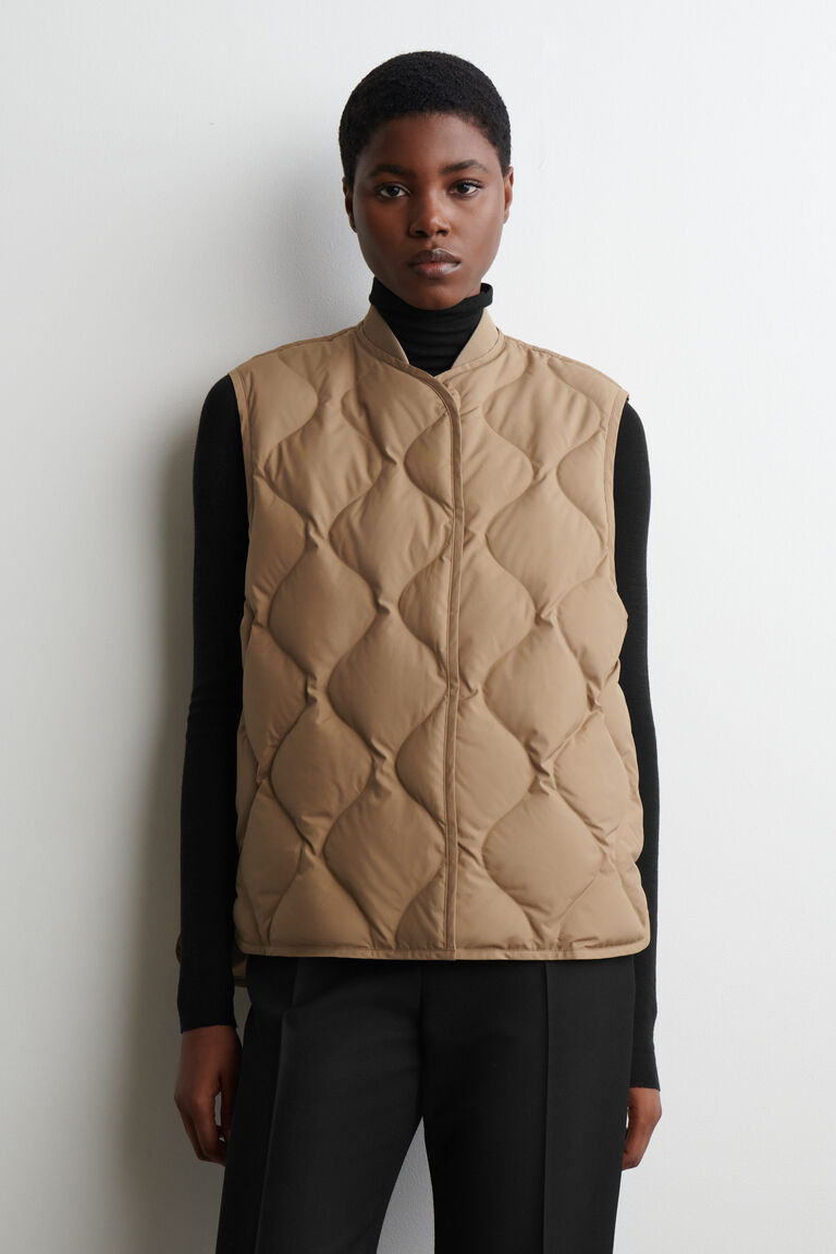 กิลเลต์ที่ประณีตนี้เหมาะอย่างยิ่งสำหรับการสวมใส่ในช่วงเปลี่ยนฤดูกาล ผลิตในสีคาราเมลเข้มข้น บุด้วยขนเป็ดเพื่อความอบอุ่นที่เบาเหมือนขนนก มาพร้อมกับปกคอแบบริบและกระเป๋าข้างที่ดูเรียบง่าย สไตล์นี้เหมาะกับการสวมทับเสื้อยืดและเสื้อไหมพรม
