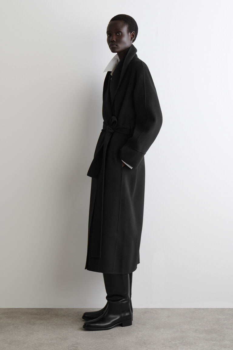 - เสื้อโค้ทผ้าวูลสองหน้า พร้อมเข็มขัดรัดเอว