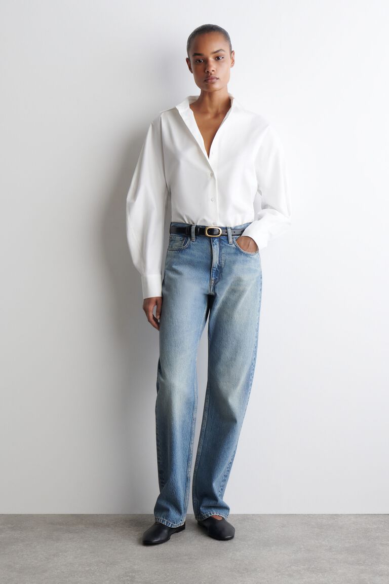 เสื้อเชิ้ตคลาสสิกได้รับการปรับโฉมใหม่ด้วยผ้าพรีเมียมและซิลูเอทสมัยใหม่ ชิ้นนี้ผลิตจากผ้าฝ้ายพิม่าเนื้อนุ่มแต่มีความคมชัด ออกแบบแขนเสื้อทรงโค้งที่ช่วยเสริมรูปร่างแบบผ่อนคลาย สไตล์นี้เข้ากันได้ดีกับยีนส์และชุดตัดเย็บ