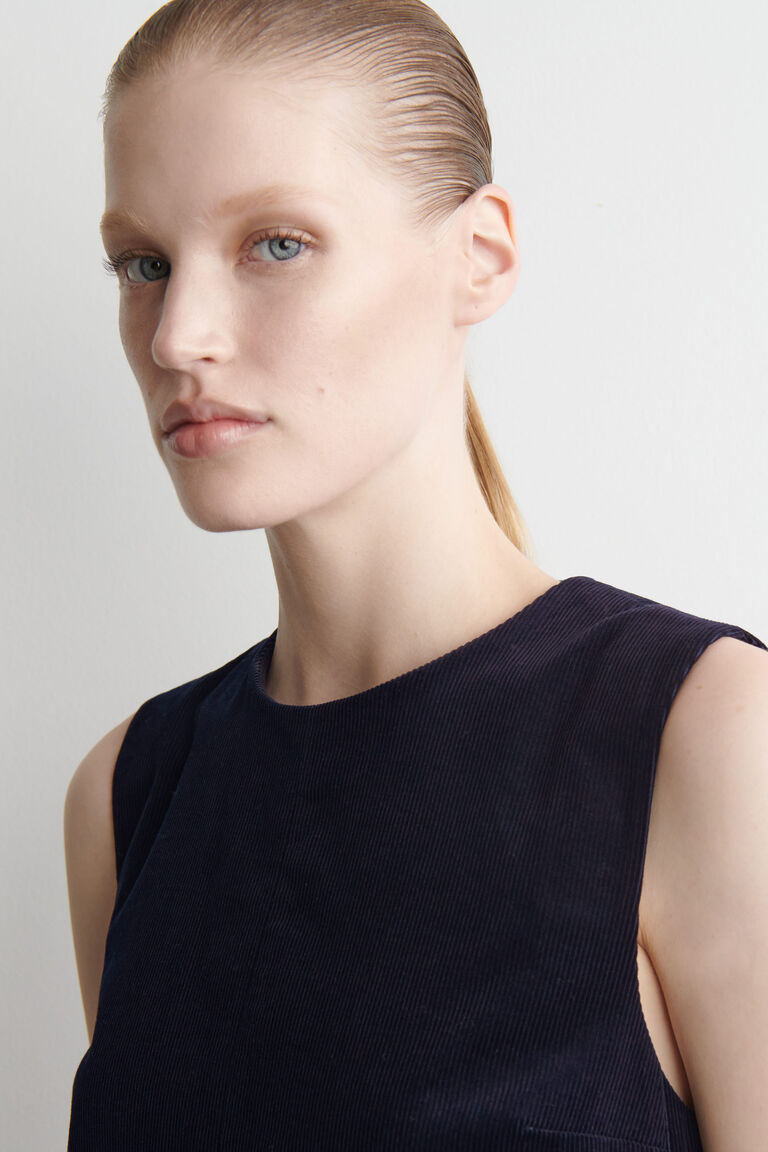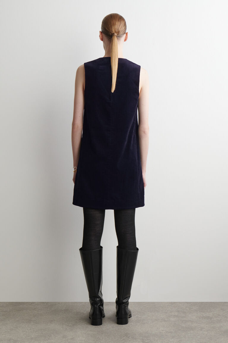 หยิบแรงบันดาลใจจากซิลูเอตต์ยุค 60s เดรสทรง shift นี้ทำจากผ้าคอตตอนคอร์ดูรอยที่มีสัมผัสนุ่ม และตัดเย็บในรูปทรง A-line แบบมินิมอล มาพร้อมโทนสีน้ำเงินกรมท่าที่เข้ากับการแต่งตัวได้ง่ายและเป็นชิ้นที่เหมาะสำหรับการใส่ซ้อน—สวมทับเสื้อแขนยาวเมื่อต้องเปลี่ยนฤดูกาล