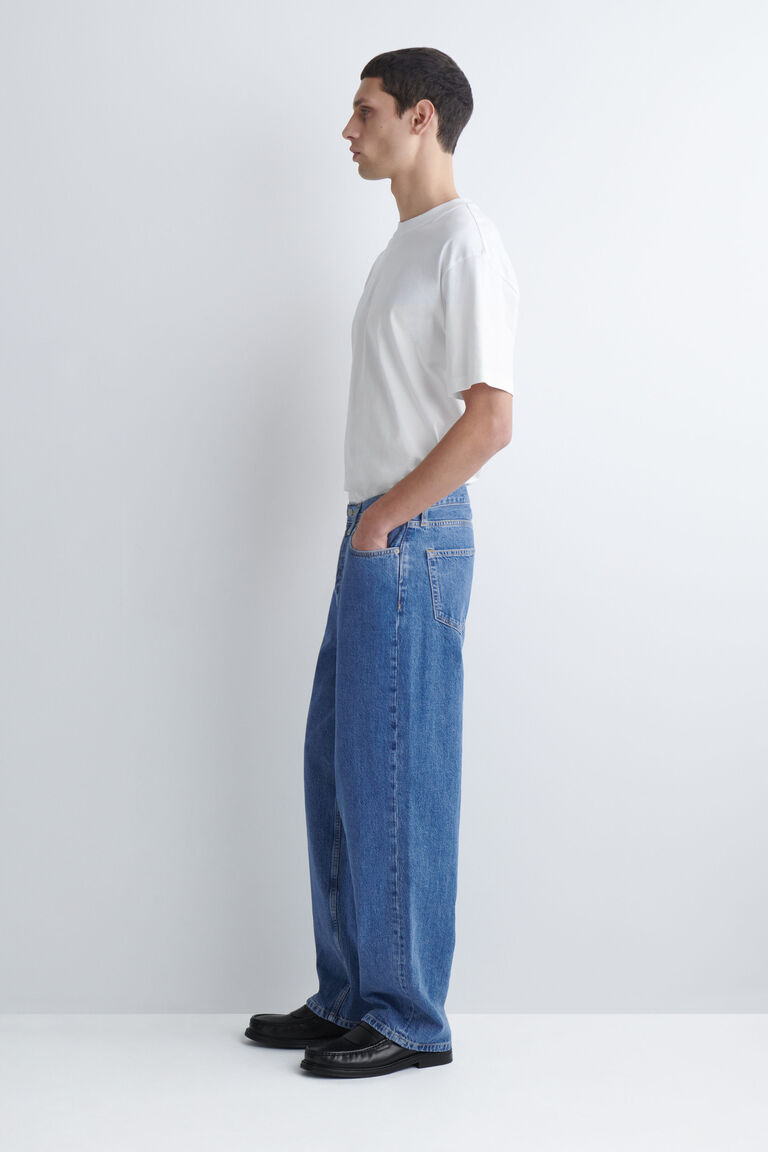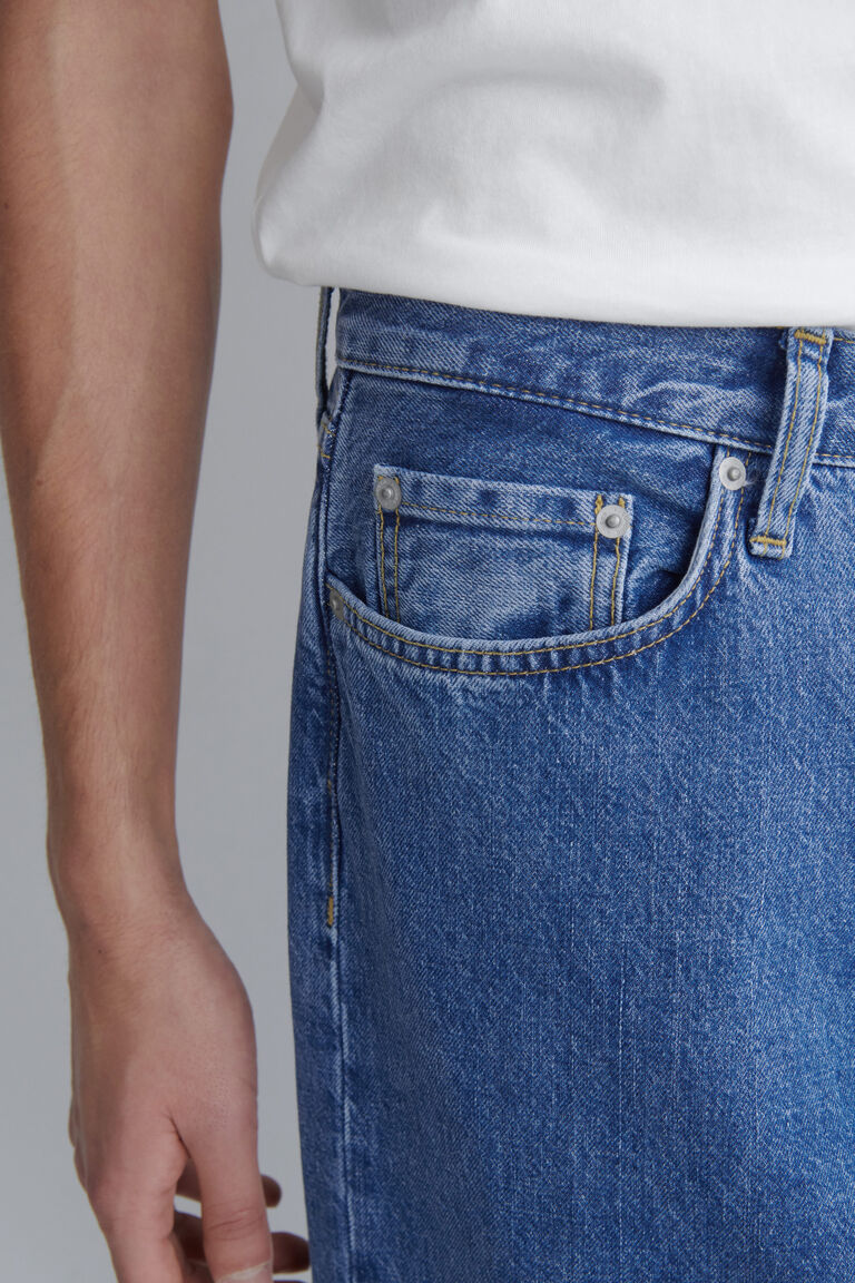 กางเกงยีนส์ Rider ออกแบบด้วยแรงบันดาลใจจากความเป็นยูทิลิตี้ ทำจากผ้ายีนส์ 13oz ที่ผสมผสานผ้าฝ้ายออร์แกนิกและผ้าฝ้ายรีไซเคิลในโทนสีขาวที่ทนทาน ตัดเย็บทรงขาตรงสบาย ๆ พร้อมงานตะเข็บบนกระเป๋าหลังที่ได้แรงบันดาลใจจากชุดทำงาน
