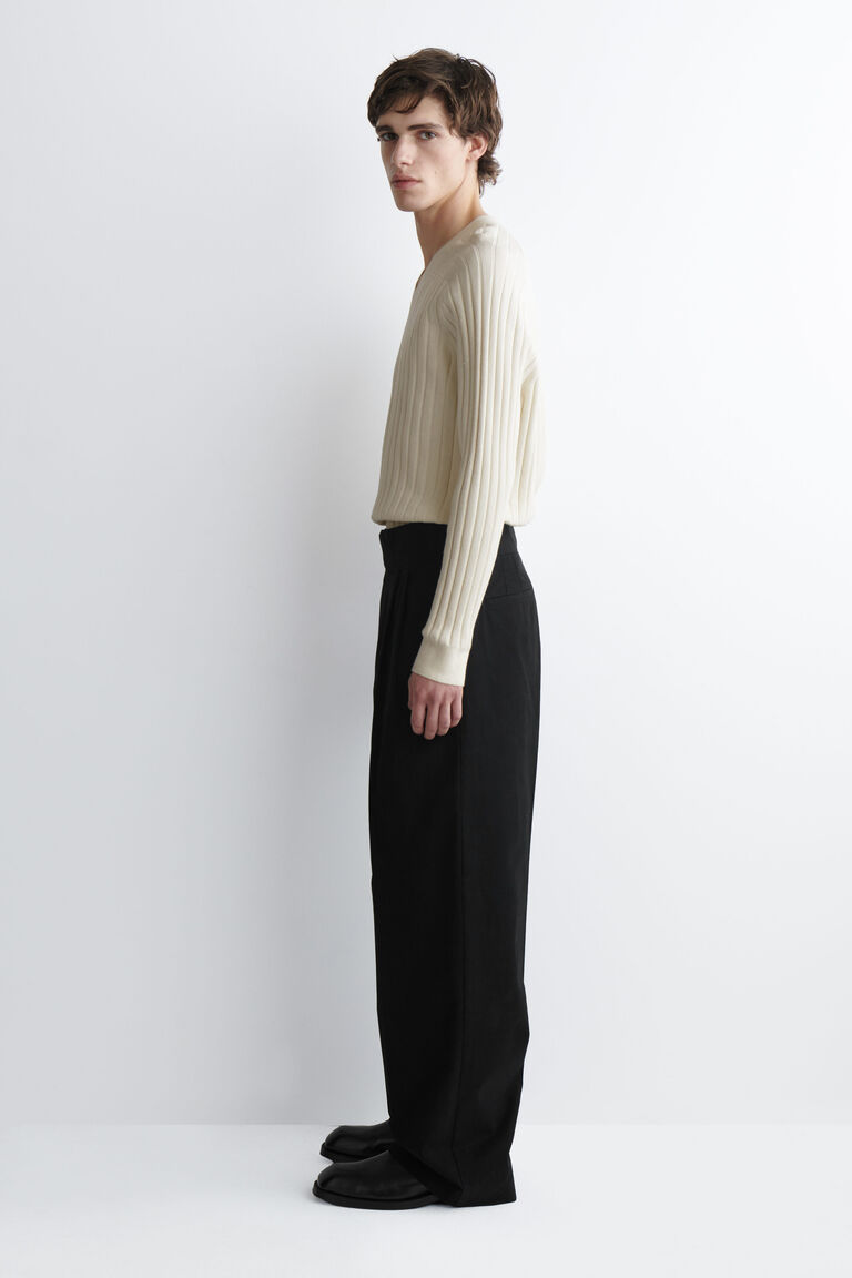 กางเกงขายาวทรงกว้างพับจีบพร้อมเข็มขัดเพิ่มดีเทล