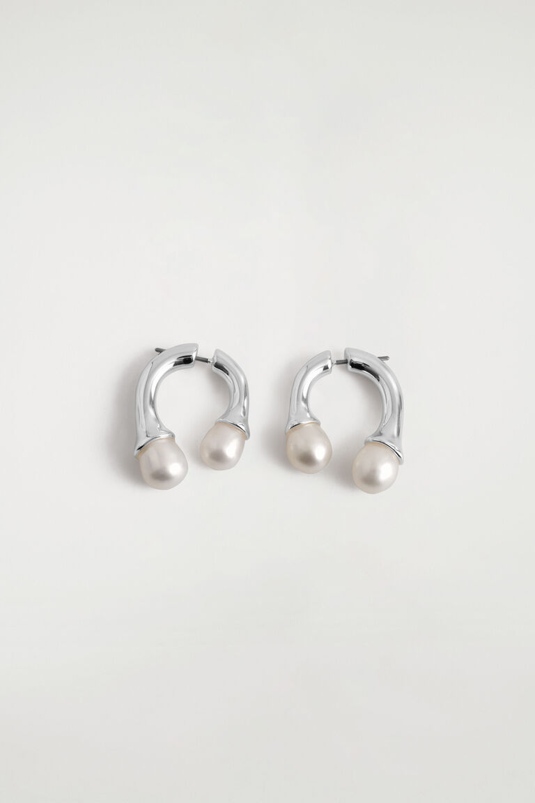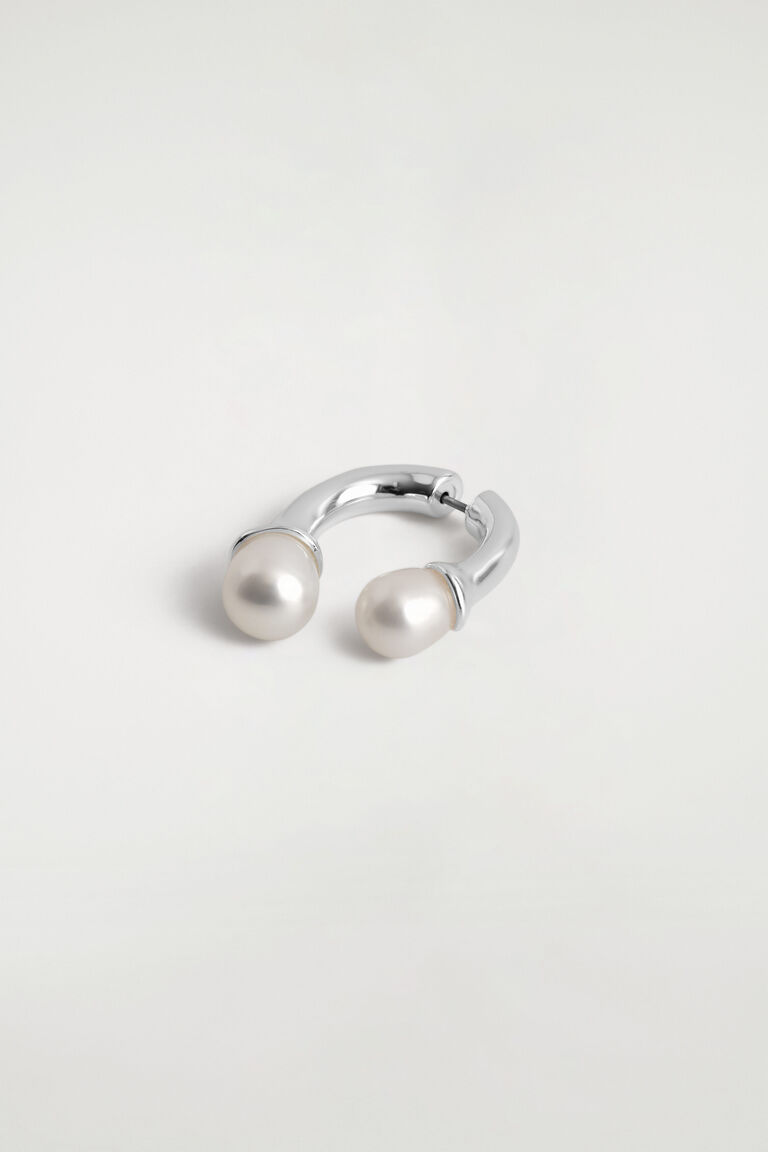 เครื่องประดับที่โดดเด่นช่วยเพิ่มบุคลิกให้กับลุคที่เรียบง่ายที่สุด ผลิตจากทองเหลืองรีไซเคิลชุบทอง เครื่องประดับหูนี้ถูกออกแบบเป็นรูปโค้งที่ตกแต่งจากทั้งสองข้างของติ่งหู พร้อมประดับด้วยไข่มุกน้ำจืดที่ปลายทั้งสองด้าน