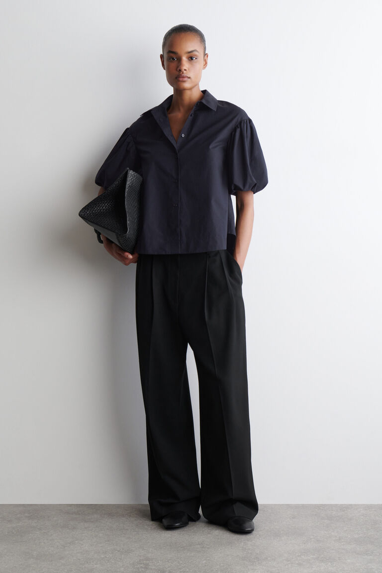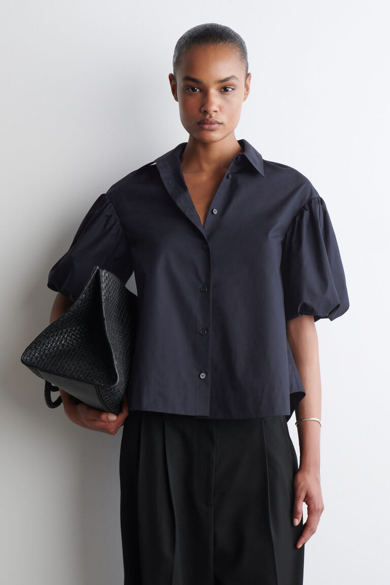 - เสื้อเชิ้ตผ้าฝ้ายแขนพองทรงทันสมัย