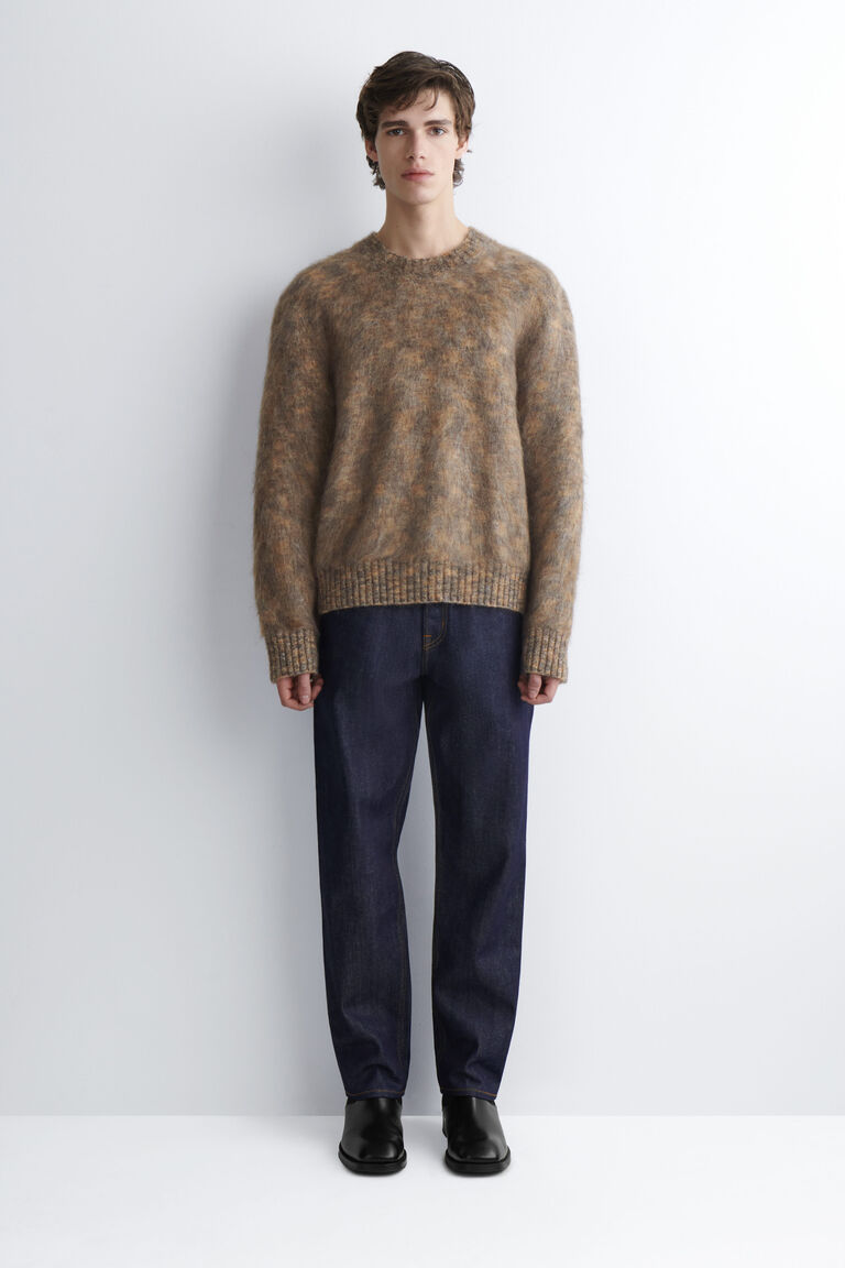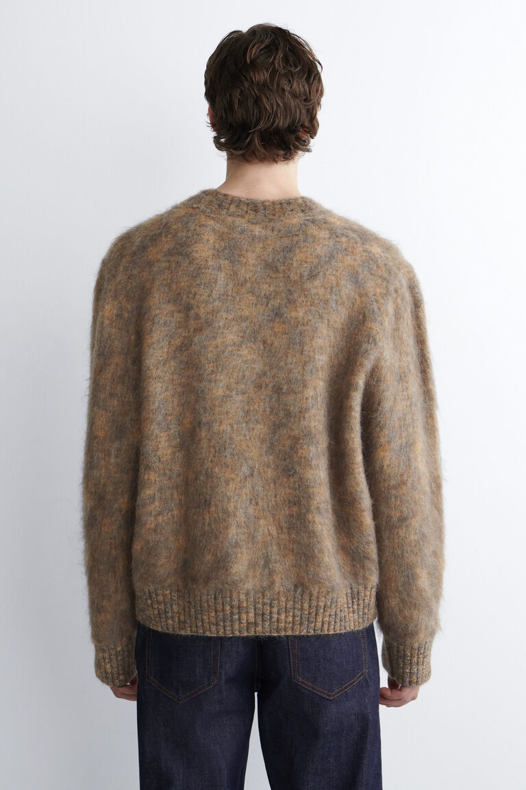 เสื้อสเวตเตอร์คอกลมตัวนี้ถักจากเส้นด้ายผสมโมแฮร์และเมอริโนวูลที่ผ่านการย้อมสีแบบ space-dyed เพื่อให้เกิดมิติที่น่าสนใจ ตัดเย็บในทรงสบายๆ พร้อมขอบแขนและคอเสื้อแบบริบหนา และผิวผ้าผ่านการแปรงเบาๆ เพิ่มความมีเนื้อสัมผัสให้กับลุคส์ลำลอง สามารถใส่ทับเสื้อทีได้อย่างลงตัว