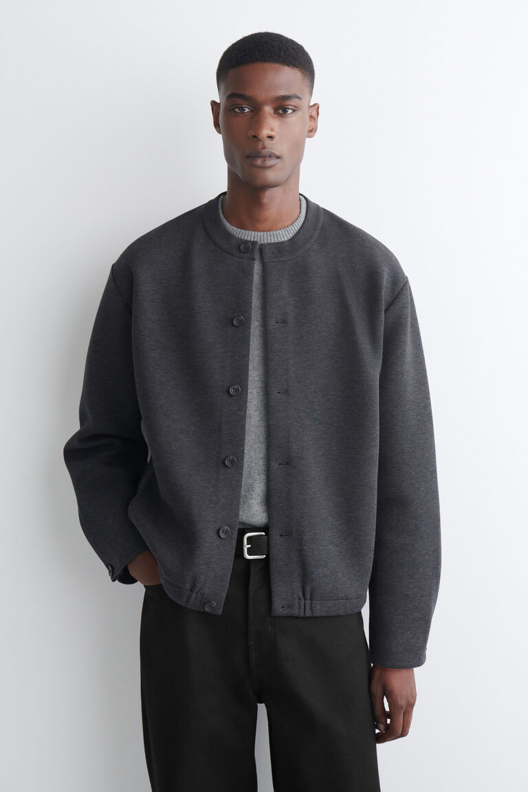 คาร์ดิแกนคอกลมผ้าสกูบาเจอร์ซีย์