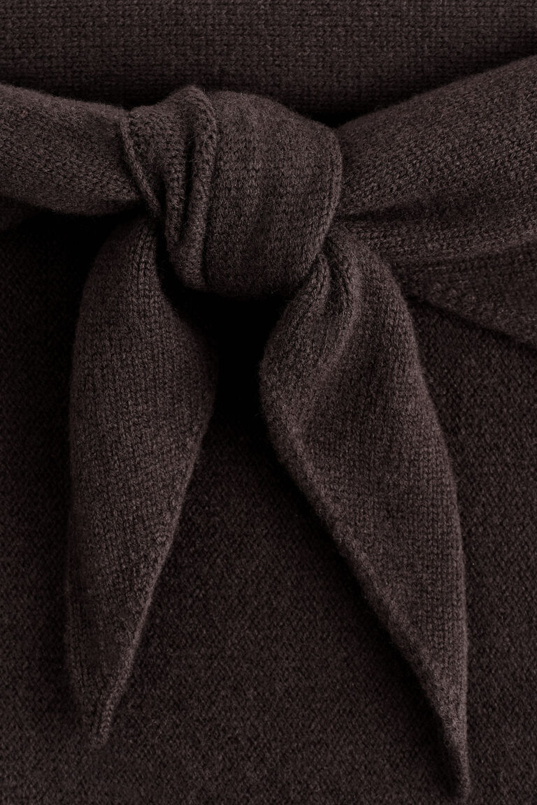 ผ้าพันคอสามเหลี่ยมถักเป็นไอเท็มสำคัญสำหรับการแต่งตัวในฤดูใบไม้ร่วง/ฤดูหนาว โทนสีเอสเพรสโซ่เข้มข้น ชิ้นนี้ผลิตจากขนแกะ RWS ที่นุ่มหรูหรา และมีรูปทรงโอเวอร์ไซส์ สามารถสวมรอบคอหรือคลุมไหล่ได้