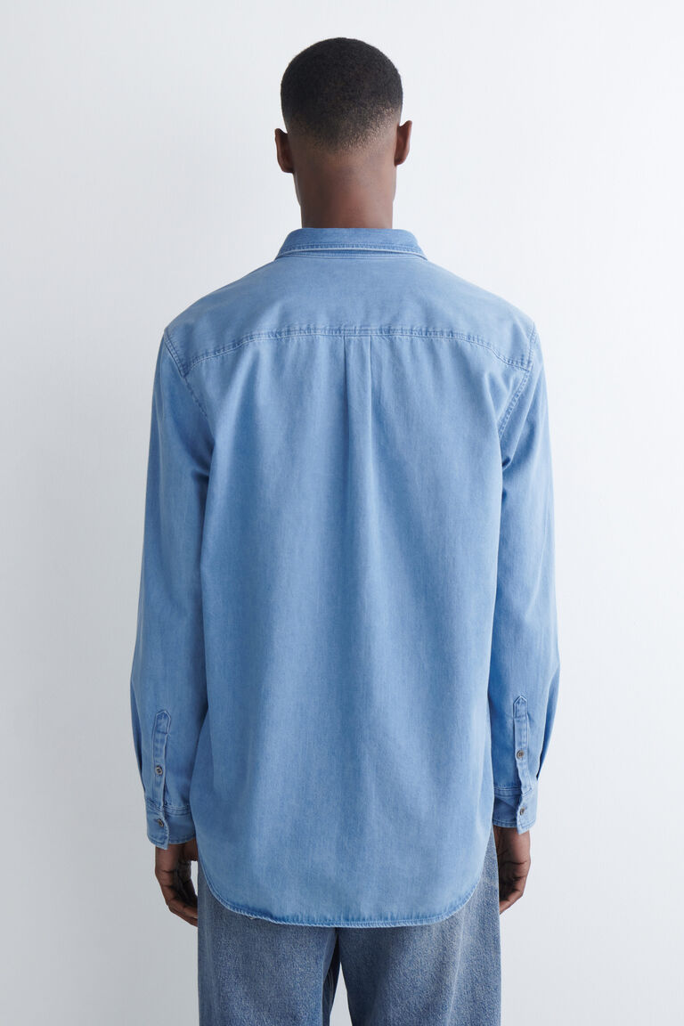 เสื้อเชิ้ตยีนส์เป็นไอเท็มสำคัญที่ช่วยเติมเต็มตู้เสื้อผ้าผู้ชายได้อย่างลงตัว ผลิตจากผ้าคอตตอนนุ่ม รุ่นนี้มาในโทนสีน้ำเงินคลาสสิก มาพร้อมปกเสื้อทรงแหลมและชายเสื้อโค้งเล็กน้อย เลือกสไตล์ double denim หรือจับคู่กับชุดสูทก็ได้ลุคที่ดูดี
