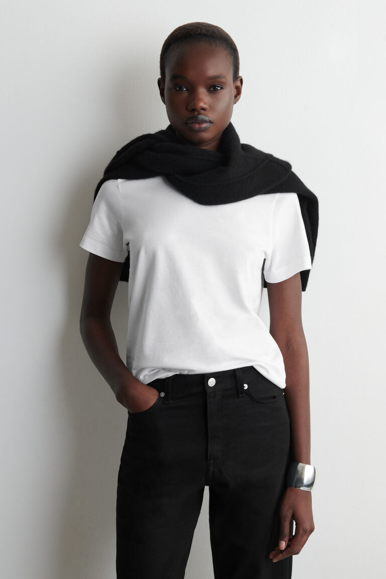ทีมเสื้อผ้าผู้หญิงของ COS ขอแนะนำไอคอนประจำวันในเวอร์ชันที่สมบูรณ์แบบ ทีเชิ้ตที่ปรับแต่งอย่างประณีตนี้ ผลิตจากผ้าคอตตอนเจอร์ซีย์น้ำหนักเบา 160gsm ซึ่งถูกเลือกมาเพื่อความสบายและความนุ่มพิเศษที่ไม่มีใครเทียบได้ ตัดเย็บในรูปแบบคอกลมคลาสสิก และมาในโทนสีขาวกลางๆ ที่เป็นกลาง