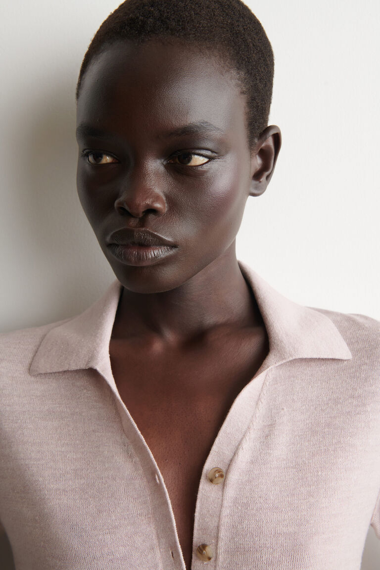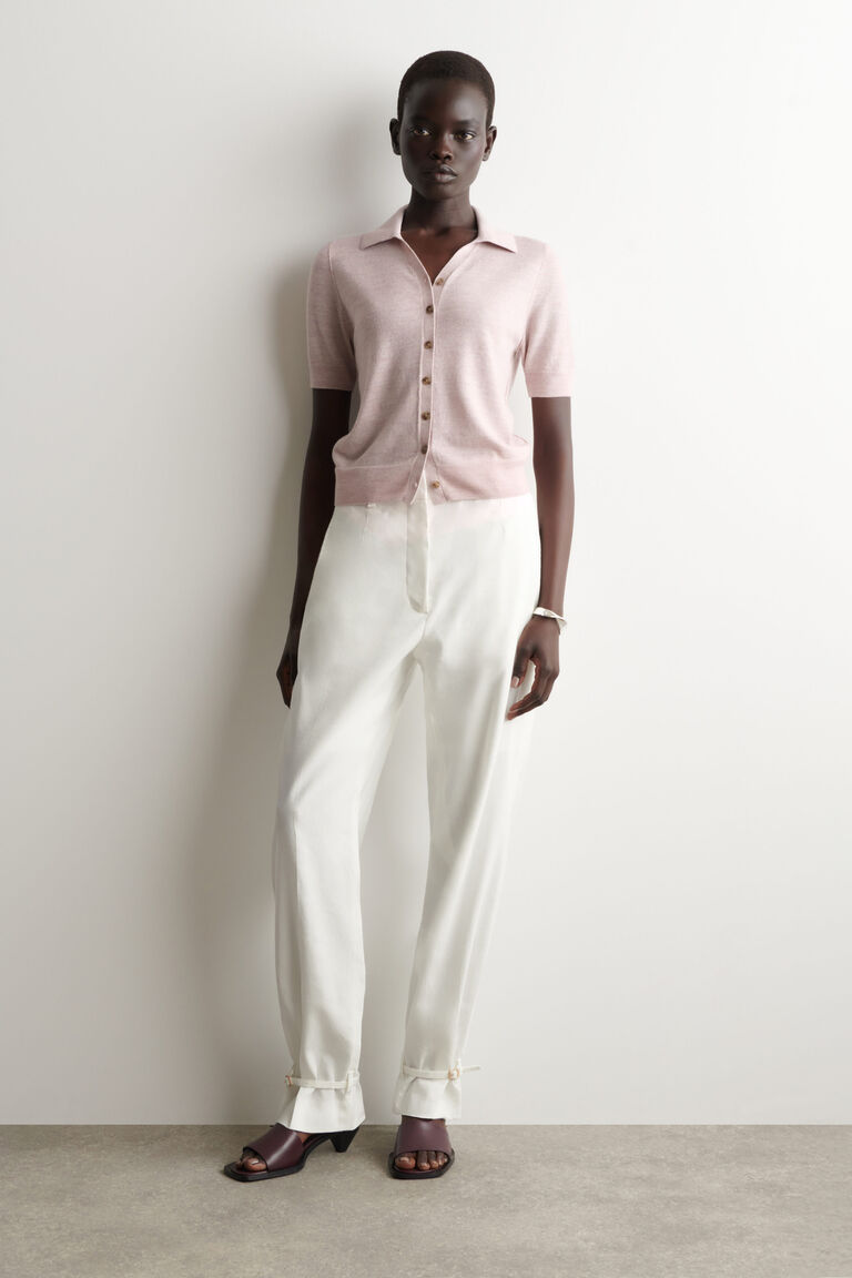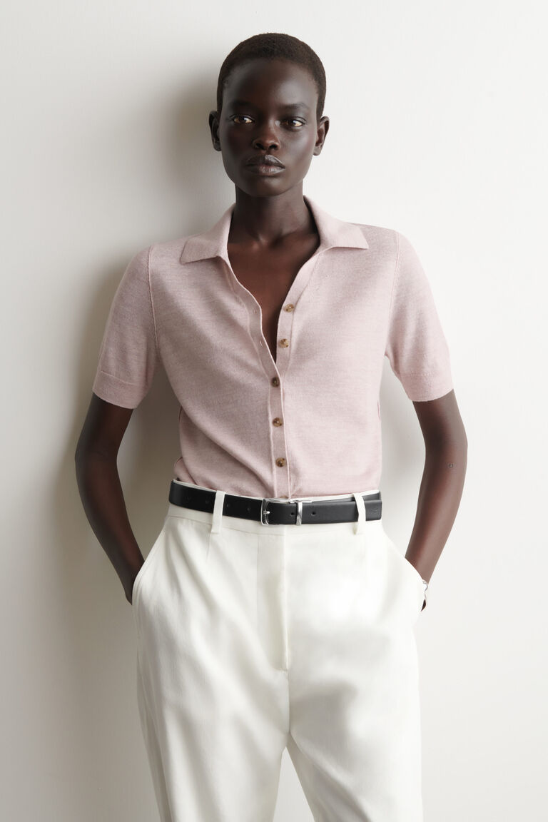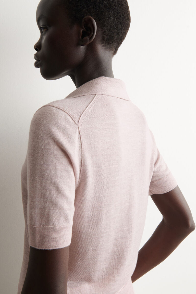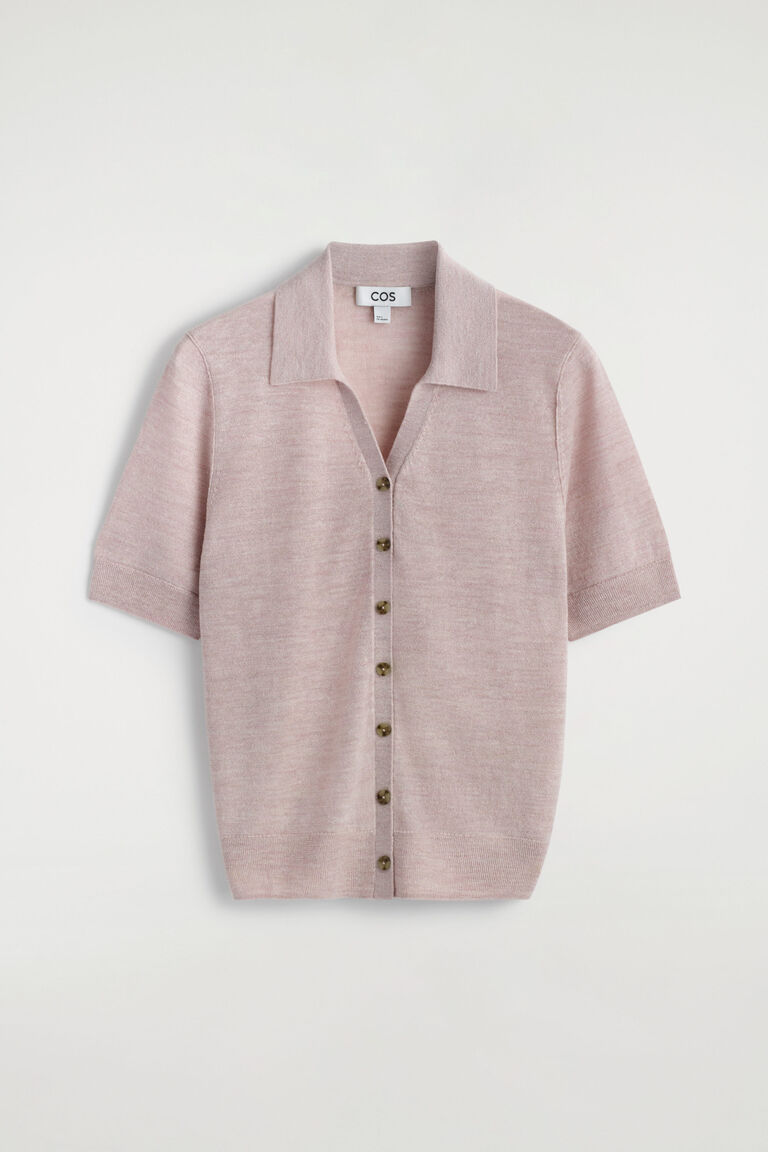 เสื้อเชิ้ตแขนสั้นถักผสมลินินและเมอริโน
