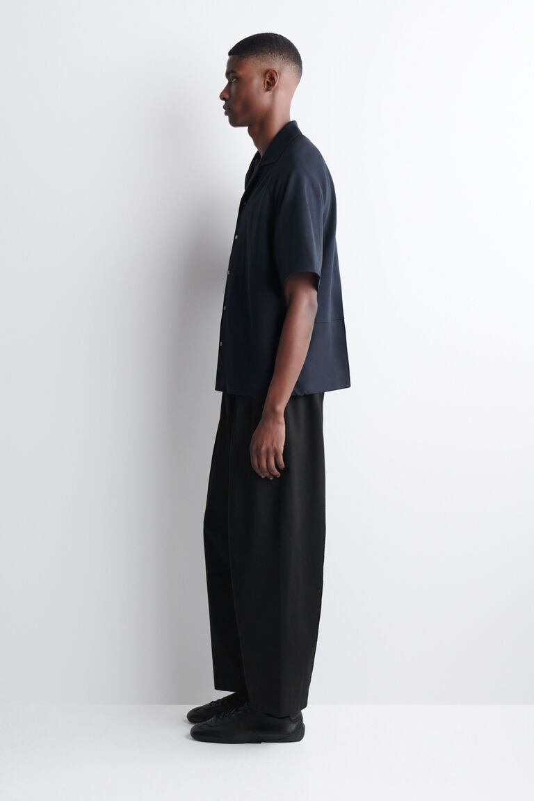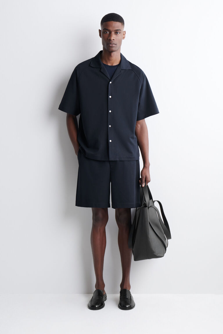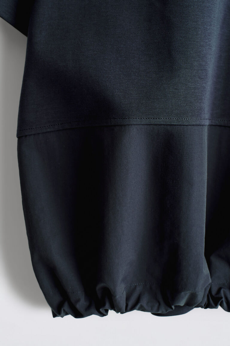 ได้รับแรงบันดาลใจจากความเป็นยูทิลิตี้ เสื้อเชิ้ตแขนสั้นตัวนี้ผลิตจากผ้าคอตตอนเจอร์ซีย์นุ่ม และตัดต่อด้วยผ้าไนลอนโทนสีเดียวกัน รูตเย็บ, กระดุมเมทัลแบบกด และเชือกผูกชายเสื้อเพิ่มความทันสมัย