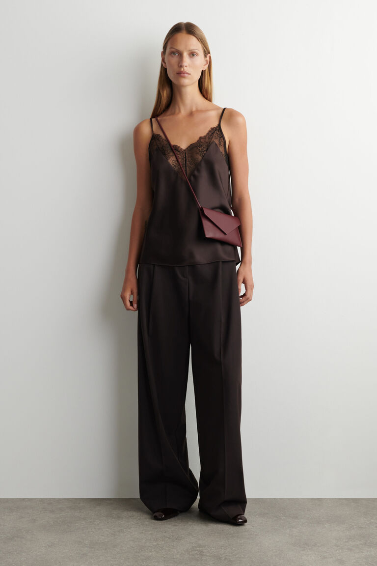 ในฤดูกาลนี้ นักออกแบบอุปกรณ์เสริมของ COS นำเสนอการตีความใหม่ของคลาสสิก กระเป๋า envelope ที่ไร้กาลเวลานี้ผลิตจากหนังที่ปราศจากโครเมียม พร้อมสายสะพายข้ามลำตัวที่ยาวขึ้นและระบบปิดด้วยแม่เหล็ก ออกแบบมาให้มีขนาดพอดีสำหรับใส่ของจำเป็น เช่น โทรศัพท์ มือถือ กระเป๋าใส่บัตร และพวงกุญแจ