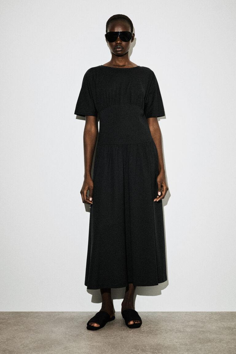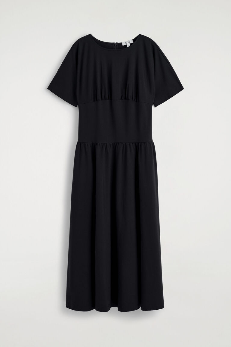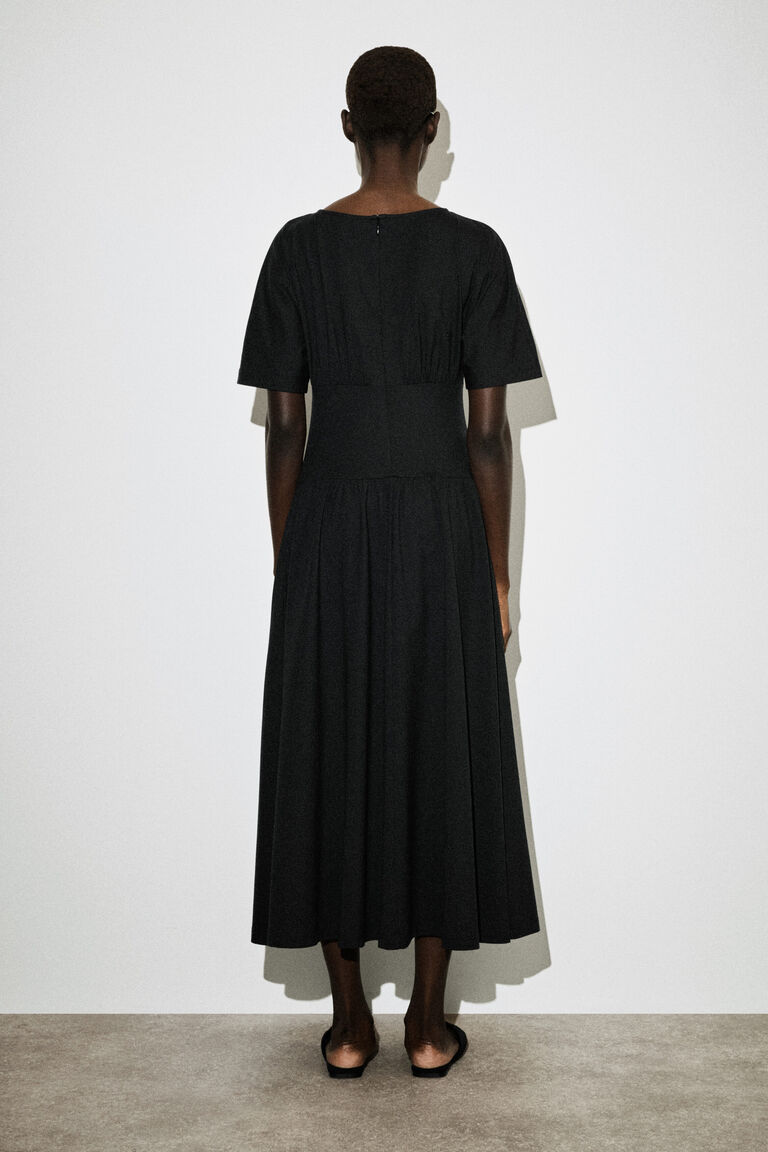 - เดรสผ้าฝ้ายทรงเข้ารูปความยาวมิดิ